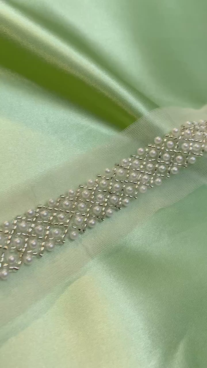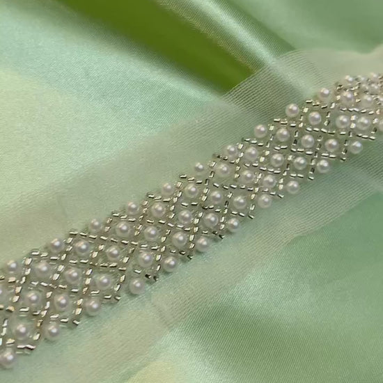 Detta vita pärlband Ariel passar bra till balklänningar, klänningar, festklänningar. Kan även vara bra till olika projekt för skräddare och kostymörer.